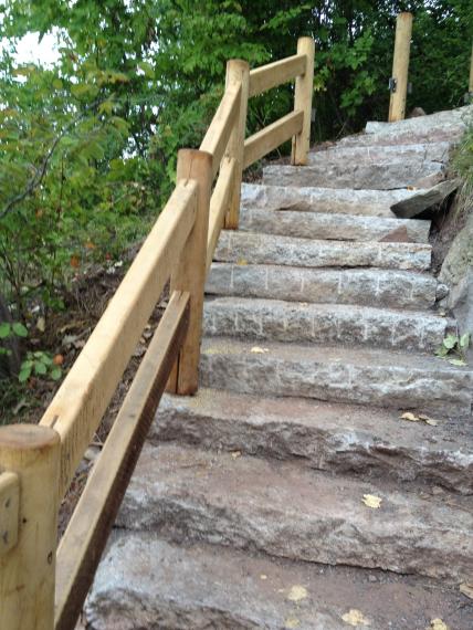 Authority. Stone steps, stone cribbing, and compacted gravel treadway replaced 20 year old