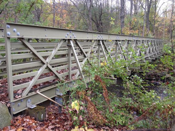 accessible trail. The major constructed features on this trail are a 65 foot fiberglass bridge and a