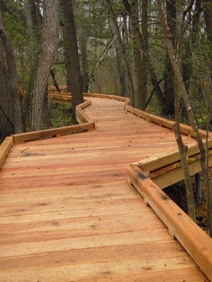 was built on top of the ground. A black locust boardwalk and bridge were built as part of the