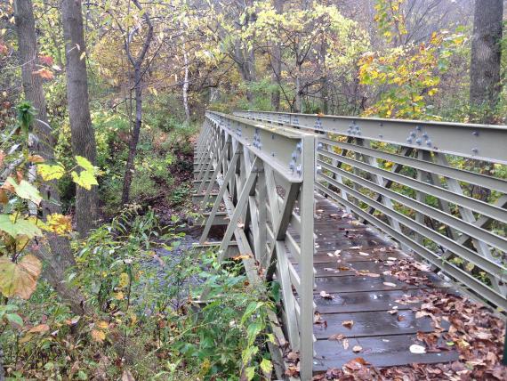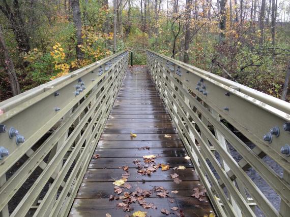 of which passes thru wooded wetlands. The accessible trail traverses a vernal pool via a short