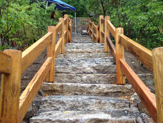 Reconstruction of this mile long trail required importation of 626 stone steps and many tons of
