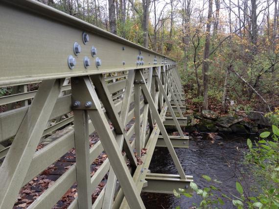 accessible trail. The major constructed features on this trail are a 65 foot fiberglass bridge and a